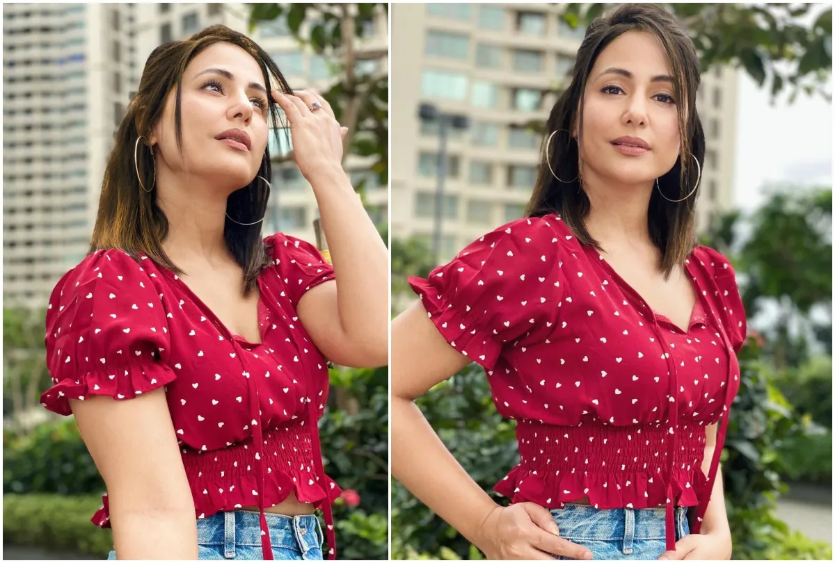 इन तस्वीरों को शेयर करते हुए हिना खान ने लिखा- 'हैलो मंडे।' इन तस्वीरों में हिना खान ने मरून रंग का टॉप जींस के साथ पहना हुआ है जिसमें वो बेहद खूबसूरत लग रही हैं। इसके साथ ही हॉफ ओपन हेयर और लाइट मेकअप उनके लुक पर बहुत सूट कर रहा है।