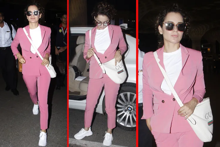आज सुबह मुंबई एयरपोर्ट में कंगना फॉरमल ड्रेस में नजर आईं। उन्होंने पिंक पैंटसूट के साथ व्हाइट टॉप पहना हुआ था। इसके साथ ही व्हाइट स्नीकर्स और व्हाइट की स्लिंग बैग में नजर आईं।