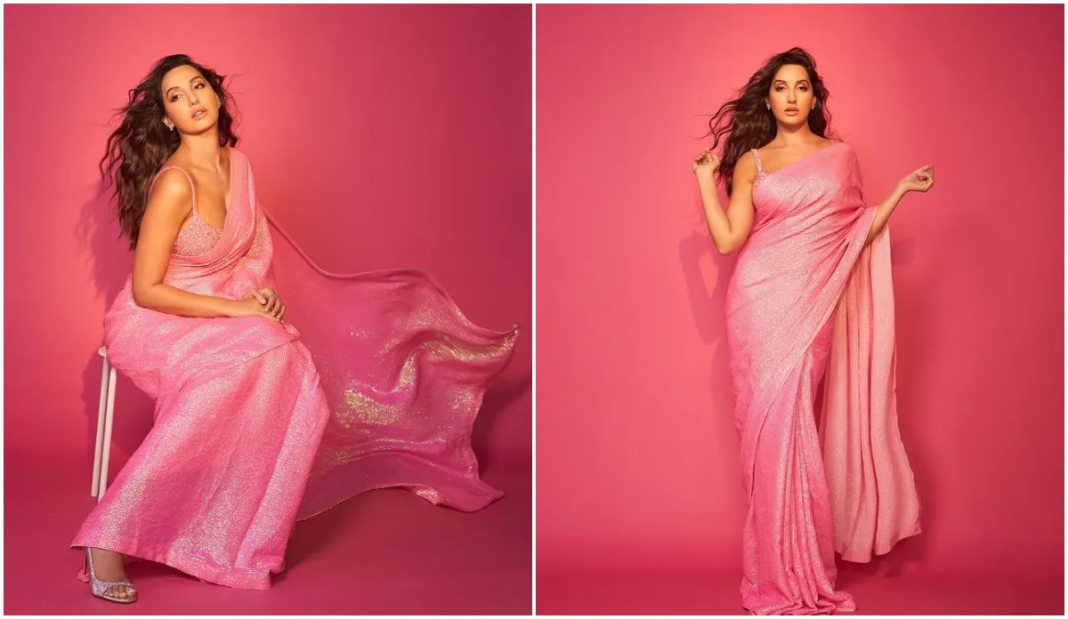 नोरा फतेही अपने डांस और स्टाइल के चलते बॉलीवुड में एक अलग जगह बना चुकी हैं. नोरा अपनी आने वाली फिल्म 'भुज' के कारण यूं भी सोशल मीडिया पर चर्चा का विषय बनी हुई हैं। हाल में ही उनका लेटेस्ट लुक काफी वायरल हो रहा है जिसमें नोरा फतेही गुलाबी रंग की शिमरी साड़ी में बेहद खूबसूरत नजर आ रही हैं।