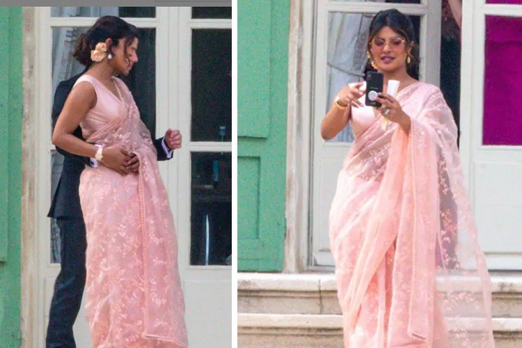 प्रियंका चोपड़ा के लुक की बात करें तो उन्होंने डिजाइनर सब्यसाची मुखर्जी के द्वारा डिजाइन की गई हल्के गुलाबी रंग की साड़ी के साथ हल्की ज्वैलरी पहन रखी थी। इसके साथ ही बालों का जूड़ा बनाया था। जिसमें उन्होंने गुलाब लगाए हुए थे।