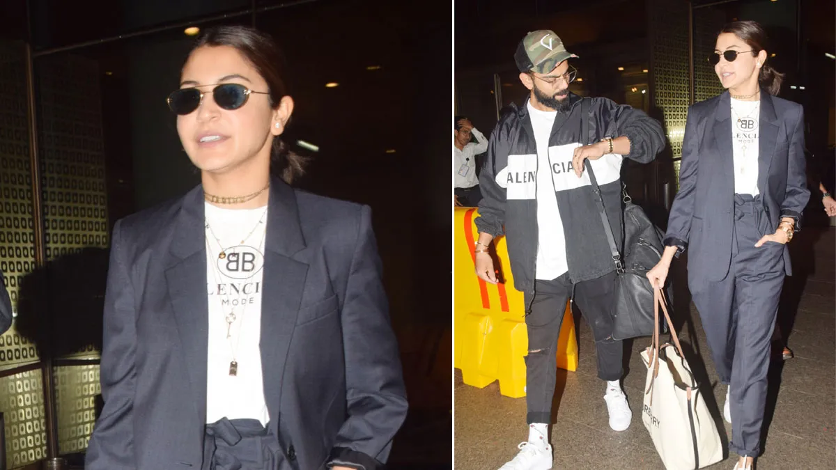 एयरपोर्ट पर पति विराट कोहली के साथ स्टाइलिश अंदाज में नजर आईं अनुष्का शर्मा, देखें तस्वीरें