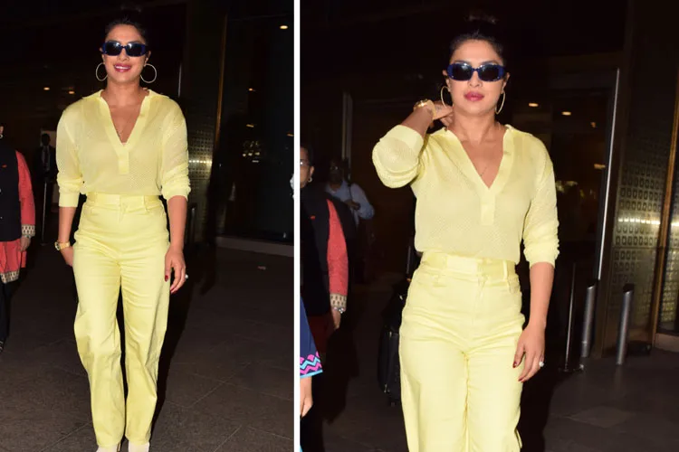 प्रियंका चोपड़ा की स्माइल देखकर इस बात का अंदाजा लगा सकते है कि वह भारत आकर कितनी खुश है। प्रियंक के लुक की बात करें तो लेमन कलर के पुलओवर और पैंट में नजर आईं।