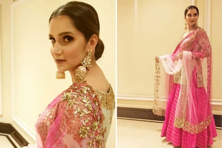 सानिया मिर्जा के लुक की बात करें तो वह सरोज जालान द्वारा डिजाइन किया हुआ पिंक और बेज कलर के लहंगे में नज़र आईं। जिसमें वह काफी खूबसूरत नजर आ रही था। सानिया ने अपना लुक लो हेयरबन और लॉन्ग झुमका स्टाइल ईयरिंग्स से कंप्लीट किया। इसके अलावा स्मोकी आईमेकअप और बोल्ड लिपस्टिक ने उनके लुक में चार चांद लगा रही थी।