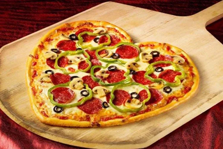सबसे पहले पिज्जा बेस को लेकर शेप कटर की मदद से दिल के आकार में काट लें। पिज्जा के पूरे बेस पर टोमैटो सॉस को अच्छी तरह से फैला दें। बारीक कटा प्याज और टमाटर उसके ऊपर डालें। (आप इस पिज्जा में अपनी पसंद की अन्य सब्जियां जैसे शिमला मिर्च, मशरूम, स्वीट कॉर्न, बेबी कॉर्न सबसे ऊपर कद्दूकस किया मोजारेला चीज डालें। अब इसे ओवन में रख दें। कम से क 20 मिनट रखा रहने के बाद इसे निकाल लें। आपका टेस्टी पिज्जा बनकर तैयार हो गया है। इसे निकाल कर लाल मिर्च और ऑरिगैनो गार्निश कर लें। इसके बाद इसे मस्टर्ड सॉस के साथ गर्मागर्म सर्व करें।