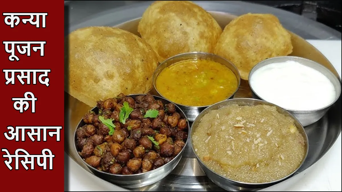 भारत के अलग- अलग राज्यों में नवरात्रि का त्योहार बड़ी धूमधाम से मनाया जाता है। बड़ी संख्या में लोग नवरात्रि के पहले और आखिरी दिन उपवास करते हैं। कुछ लोग पूरे 9 दिन व्रत रखते हैं और नवमी के दिन कन्या पूजन करते हैं। उत्तर प्रदेश, दिल्ली, मध्य प्रदेश, राजस्थान, बिहार और हरियाणा जैसे राज्यों में बहुत सारे लोग कन्या पूजन करते हैं। इसके लिए खास प्रसाद तैयार किया जाता है। कन्या पूजन के लिए हलवा, चने और पूरी बनाई जाती हैं। कुछ लोग हलवा की जगह खीर पूरी और चने भी खिलाते हैं। ऐसे में अगर आप पहली बार कन्या पूजन करना चाहते हैं तो हम आपको कन्या पूजन का प्रसाद बनाने की आसान रेसिपी बता रहे हैं। बड़ी आसानी से आप कन्या पूजन के लिए स्वादिष्ट प्रसाद बना सकते हैं। आइये जानते हैं रेसिपी।