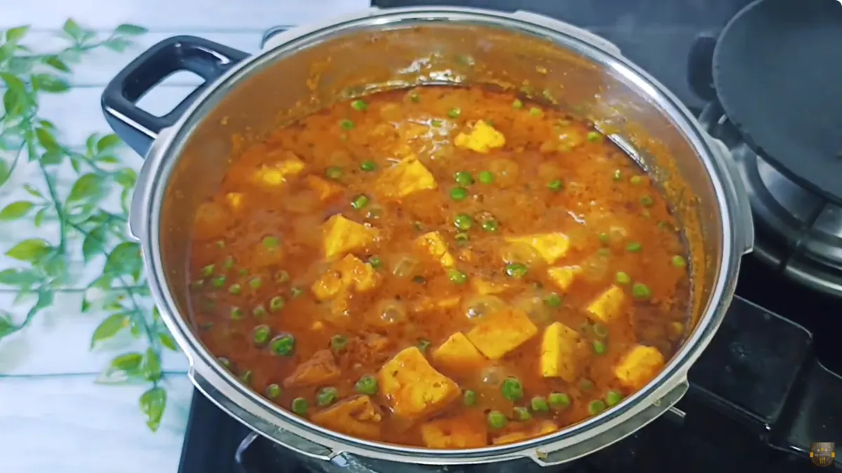 पांचवां स्टेप- कुकर में मटर पनीर बनाने के लिए पानी बहुत ज्यादा नहीं डालना है। कुकर में सब्जी जल्दी पक जाती है और पानी जलता नहीं है। इसलिए सब्जी बनने पर जितना पानी चाहिए उतना ही डालें। अब कुकर को बंद करके सब्जी को मीडियम आंच पर 1- 2 सीटी आने तक पकाएं।