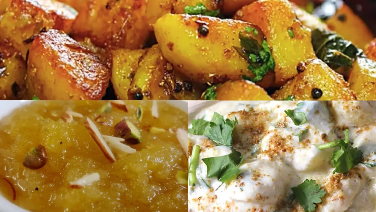 आलू फ्राई नमकीन हलवा- व्रत में कुछ नमक वाला खाने का मन है तो आप नमकीन हलवा बनाकर खा सकते हैं। जब आप कम खाते हैं तो एनर्जी लो होने लगती है ऐसे में नमक खाने से मुंह का स्वाद भी अच्छा हो जाता है और शरीर को एनर्जी भी मिल जाती है। व्रत में आलू फ्राई आसानी से तैयार हो जाते हैं। इसके लिए आलू को उबालकर छील लें और टुकड़ों में काट लें। पैन में घी गर्म करें और फिर जीरा, हरी मिर्च डाल दें। आप टमाटर खाते हैं थोड़े टमाटर भी डाल दें। इसमें कटे हुए आलू डाल दें और फिर इसे चलाते रहें। अब सेंधा नमक मिक्स कर हरा धनिया और भुनी हुई मूंगफली डाल दें। आलू का टेस्टी नमकीन हलवा तैयार है।