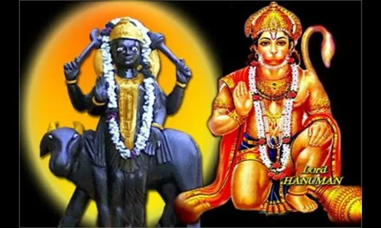 कहा जाता है कि जब रावण को अपनी बलशक्ति पर काफी घमण्ड हो गया था तो उसने सारे ग्रहों को अपना बंदी बना लिया था। उसी समय उसने शनि देव को भी अपनी कैद में उल्टा लटका रखा था। जब हनुमान जी राम दूत बनकर लंका पहुंचे तो रावण ने उनके साथ भी दुर्व्यवहार किया और उनकी पूछं में आग लगवाई। रावण की इस हरकत से क्रोधित होकर हनुमान ने अपनी पूंछ से सारी लंका को आग लगा दी और इसी दौरान सारे ग्रह रावण की कैद से मुक्त हो गये। उल्टा लटका होने के कारण शनिदेव को शरीर में काफी दर्द हो रही थी। शनिदेव को दर्द में देख हनुमान ने उनकी मदद की और दर्द को शांत करने के लिए उनके शरीर में तेल की मालिश की।