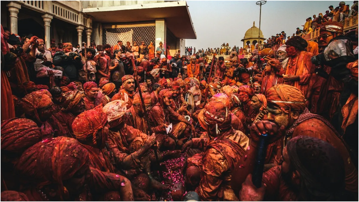 मथुरा जिले के वृंदावन में बांके बिहारी मंदिर में होली उत्सव की धूम देखी गई। लोग यहां हजारों की संख्या में पहुंचे हैं।