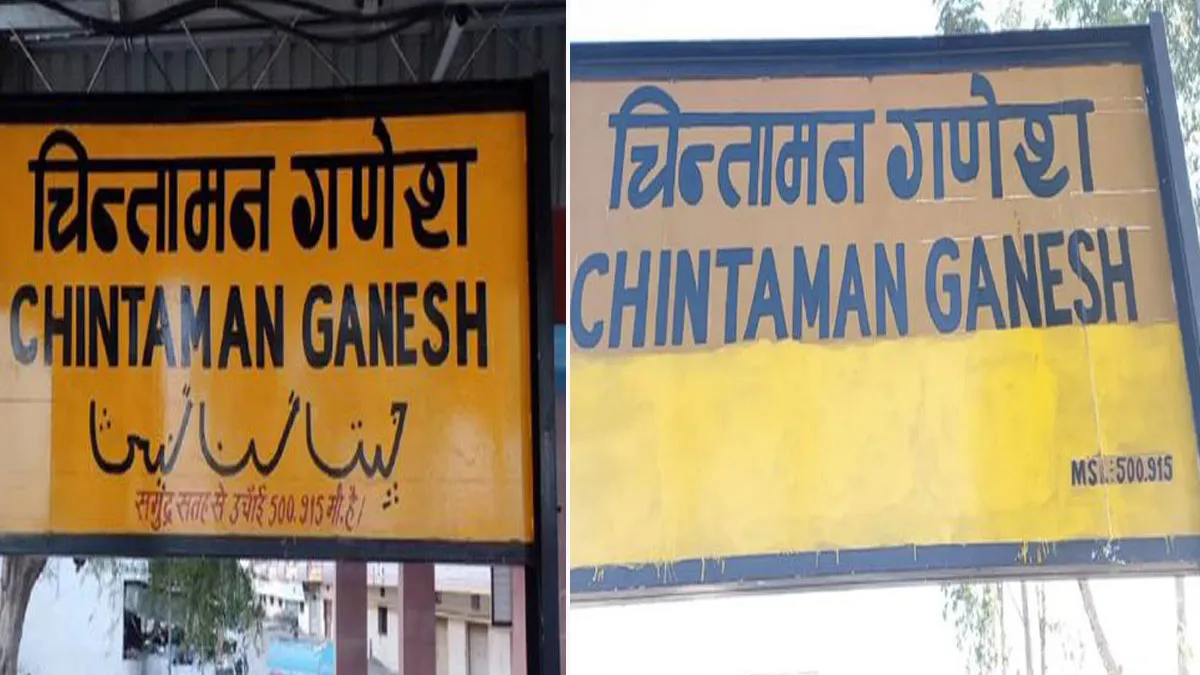 उज्जैन: मध्य प्रदेश की धार्मिक नगरी उज्जैन में बना नया रेलवे स्टेशन चिंतामन गणेश उदघाटन से पहले ही एक विवाद के कारण सुर्खियों में आ गया है। चिंतामन गणेश मंदिर के सामने बने स्टेशन की पट्टिका पर उर्दू में स्टेशन का नाम लिखा होने पर विवाद खड़ा हुआ तो रातों-रात उर्दू में लिखे नाम को पोत दिया गया। लेकिन ये रेलवे की कार्रवाई है या किसी और ने पीला रंग पोत दिया है फिलहाल इसका पता नहीं चल पाया है। आवाहन अखाड़े के महामंडलेश्वर आचार्य शेखर ने इस पर आपत्ति दर्ज कराई थी। उन्हें पट्टिका पर स्टेशन का नाम उर्दू में भी लिखे होने पर एतराज था।