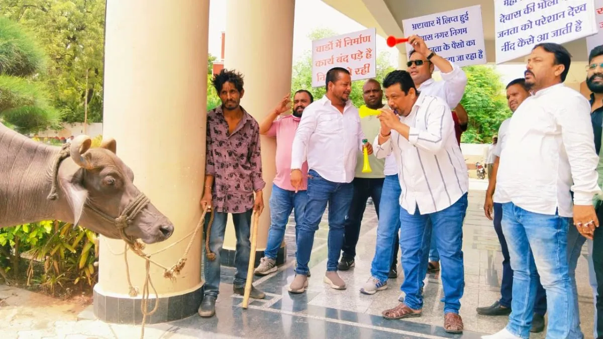 शहर के वार्डों में नहीं हो रहा काम, नाराज पार्षदों ने भैंस के आगे बीन बजाकर जताया विरोध; देखें वीडियो