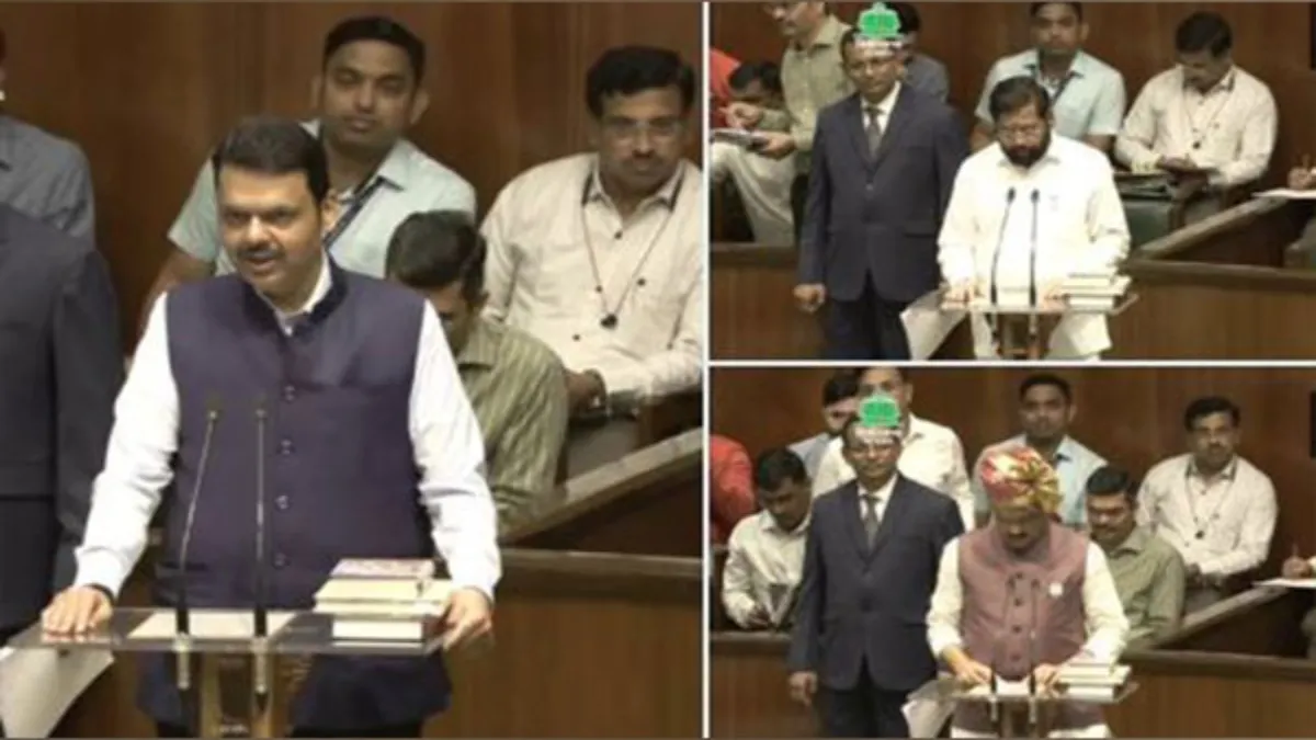 मुंबई: महाराष्ट्र विधानसभा के विशेष सत्र के पहले दिन आज मुख्यमंत्री देवेंद्र फड़नवीस और उपमुख्यमंत्रियों एकनाथ शिंदे और अजीत पवार ने शनिवार को महाराष्ट्र विधानसभा के सदस्य के रूप में शपथ ली। इस बीच, शिवसेना यूबीटी नेता आदित्य ठाकरे भी पार्टी कार्यकर्ताओं के साथ विधान भवन परिसर पहुंचे और विपक्ष ने विधानसभा के सत्र का बहिष्कार किया। शिवसेना यूबीटी नेता आदित्य ठाकरे ने कहा, "हमने आज शपथ ग्रहण समारोह का बहिष्कार किया क्योंकि ईवीएम के इस्तेमाल से लोकतंत्र की हत्या की जा रही है। यह (महाराष्ट्र विधानसभा चुनाव के नतीजे) जनता का जनादेश नहीं है।"