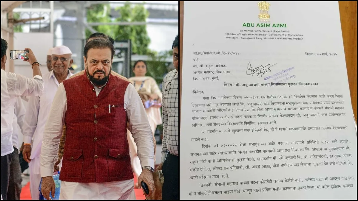 समाजवादी पार्टी के विधायक और महाराष्ट्र प्रदेश अध्यक्ष अबू आजमी ने विधानसभा स्पीकर राहुल नार्वेकर को पत्र लिखकर निलंबन वापस लेने की मांग की है। अबू आजमी ने मुगल शासक औरंगजेब का महिमा मंडन किया था। इसके बाद वह विवादों में घिर गए और महाराष्ट्र विधानसभा से उन्हें निलंबित कर दिया गया। अब उन्होंने स्पीकर को पत्र लिखकर उनकी सदस्यता बहाल करने की मांग की है।