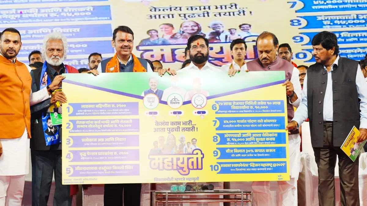 महाराष्ट्र विधानसभा चुनाव के लिए महायुति घोषणापत्र जारी कर दिया है। महायुति ने 10 चुनावी वादे किए हैं। इनमें लाडकी बहिन योजना की राशि बढ़ाने का वादा भी है।