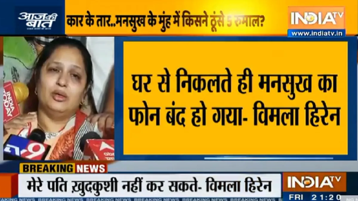 मुकेश अंबानी एंटीलिया धमकी मामले में मनसुख हिरेन की मौत को लेकर लगातार सवाल उठ रहे हैं। मनसुख हिरेन की पत्नी विमला हिरेन ने शुक्रवार को कहा कि मनसुख के पास क्राइम ब्रांच के अफसर का फोन आया था। क्राइम ब्रांच के अफसर तावड़े ने मनसुख को घोड़बंदर मिलने के लिए बुलाया था। मेरे पति खुदकुशी नहीं कर सकते। मेरे पति की मौत की जांच हो। विमला ने आगे कहा कि पुलिस ने शुरू में गुमशुदगी की रिपोर्ट दर्ज नहीं की थी। मनसुख की मौत की तह तक जांच होनी चाहिए। घर से निकलते ही मनसुख का फोन बंद हो गया। उधर, महाराष्ट्र सरकार ने मनसुख की मौत के मामले की जांच एटीएस से कराने का ऐलान किया है।