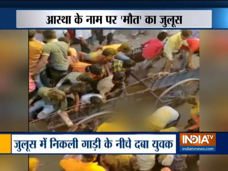 महाराष्ट्र के मालेगांव में रविवार को एक दर्दनाक हादसा घट गया। यहां एक धार्मिक जुलूस के दौरान शोभायात्रा के वाहन के नीचे दबकर एक व्यक्ति की मौत हो गई। हादसे के वक्त वह व्यक्ति भी उस वाहन को धक्का लगा रहा था। पैर फिसलने पर वह पहिए के नीचे आ गया। इस दौरान शोभायात्रा के वाहन पर भी बड़ी संख्या में लोग सवार थे। नीचे दिए गए वीडियो में हादसे की पूरी तस्वीर सामने आई है जो दिल दहलाने वाली है।