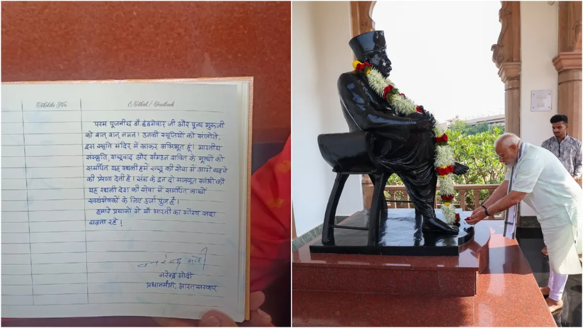 पीएम मोदी ने स्मृति मंदिर के विजिटर बुक में लिखा, 'परम पूजनीय डॉ. हेडगेवार और पूज्य गुरूजी को शत्-शत् नमन। उनकी स्मृतियों को संजोने, इस स्मृति मंदिर में आकर अभिभूत हूं। भारतीय संस्कृति, राष्ट्रवाद और संगठन के मूल्यों को समर्पित यह स्थली हमें राष्ट्र सेवा में आगे बढ़ने की प्रेरणा देती है। संघ के दो मजबूत स्तंभों की यह स्थली देश की सेवा में समर्पित लाखों स्वयंसेवकों के लिए ऊर्जा पुंज है। हमारे प्रयासों से मां भारती का गौरव सदा बढ़ता रहे।'