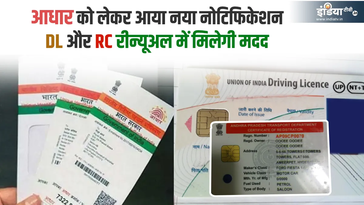आधार को लेकर नया नोटिफिकेशन जारी, घर बैठे ड्राइविंग लाइसेंस बनवाने और RC रिन्यूअल में मिलेगी मदद