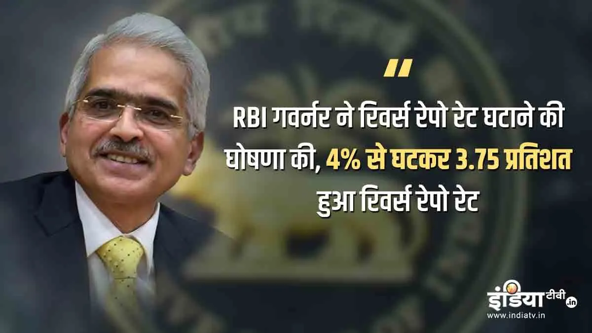 बैंकों द्वारा अपने धन को रिजर्व बैंक के पास रखने और रिजर्व बैंक द्वारा इस जमा धन पर दिए जाने वाले ब्याज दर को रिवर्स रेपो रेट कहा जाता है। इससे पहले आरबीआई ने 27 मार्च को रेपो रेट में 75 आधार अंकों की कटौती और रिवर्स रेपो रेट में 90 आधार अंकों की कटौती की थी। इस कटौती के बाद रेपो रेट 4.4 प्रतिशत औररिवर्स रेपो रेट 4 प्रतिशत हो गई थी। आरबीआई गवर्नर ने कहा कि कोविड-19 महामारी के चलते पैदा हुई परिस्थितियों पर आरबीआई बराबर नजर रखे हुए है। उन्होंने कहा कि महामारी के प्रकोप के दौरान सामान्य कामकाज सुनिश्चित करने के लिए बैंकों, वित्तीय संस्थानों ने विशेष तैयारी की हैं।