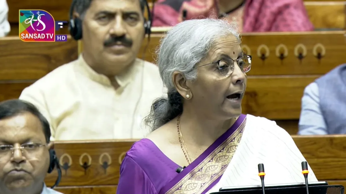 Image Source : SANSAD TVवित्त मंत्री निर्मला सीतारमण संसद में मंगलवार को बजट पेश करती हुईं।
