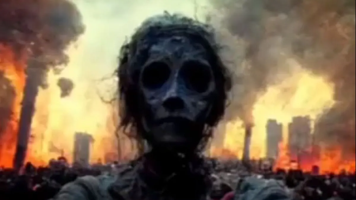 DALL-E 2 द्वारा एआई की मदद से चार खौफनाक तस्वीर बनाई गई है। जो रोबोट की तरह दिखाई दे रही है। इसमें मनुष्य की बड़ी आंखें और लंबी उंगलिया हैं। कंकाल की तरह दिख रही इस तस्वीर के पीछे शहर तबाह होते नजह आ रहे हैं। जैसे दुनिया खत्म हो गई हो। भयावह कंकाल के चारों ओर धुएं के गुबार भी देखे जा सकते हैं।