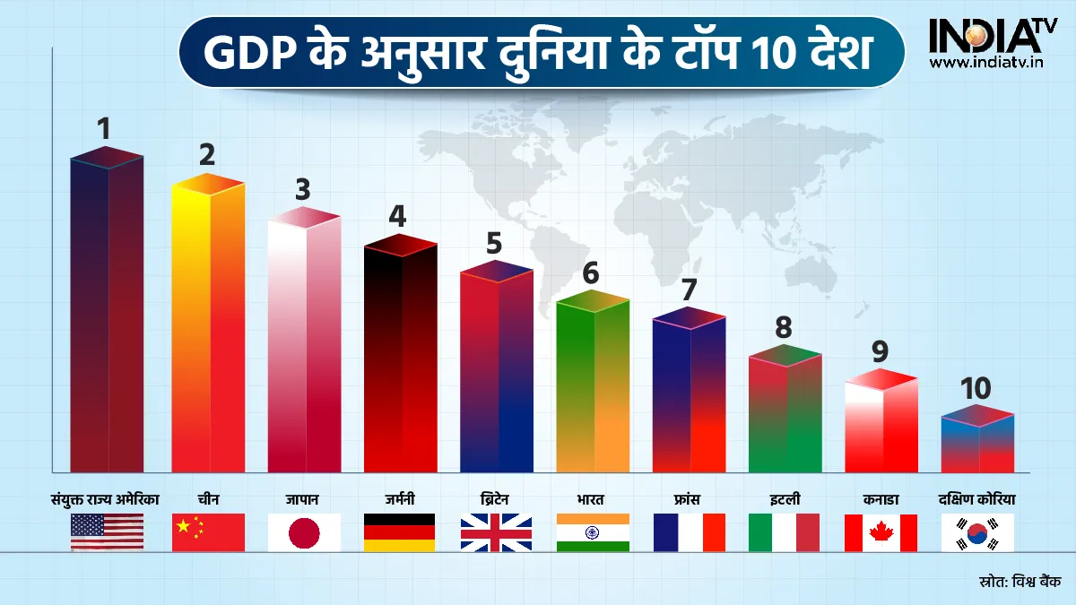 GDP (Gross domestic product) यानी सकल घरेलू उत्पाद के अनुसार भारत दुनिया की छठी बड़ी अर्थव्यवस्था है। कोरोना महामारी के बाद भारतीय अर्थव्यवस्था को झटका लगा है जिससे इसकी रैकिंग एक पायदान नीचे आ गई है। विश्व बैंक की रिपोर्ट के अनुसार, भारत से आगे अब ब्रिटेन पहुंच गया है। पहले भारत पांचवें पायदान पर था। वहीं, अगर क्रय शक्ति समानता (Purchasing Power Parity) के आधार पर देंखे तो भारत दुनिया की तीसरी बड़ी अर्थव्यवस्था है। अब आप सोच सकते हैं कि आखिर इन दोनों के बीच इतना बड़ा अंतर क्यों हैं? तो आइए, जानते हैं कि जीडीपी और पीपीपी क्या है और कैसे किसी देश की अर्थव्यवस्था का साइज इन दोनों से मापा जाता है।