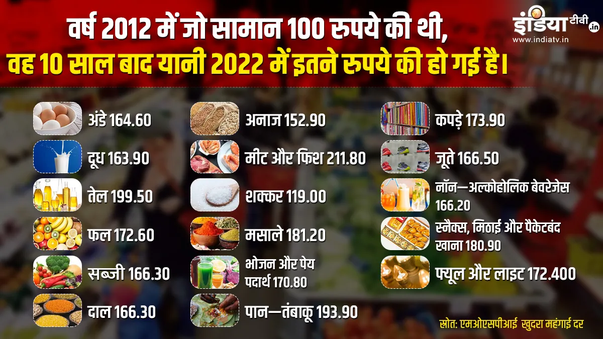 कोरोना महामारी और उसके बाद आसमान छूती महंगाई ने आम आदमी का बुरा हाल कर रखा है। आंकड़ों पर गौर करें तो 2012 से 2022 के बीच खाने-पीने की वस्तुओं के दामों में दोगुनी से ज्यादा बढ़ोतरी हुई है। गौर करने लायक बात है कि भारत दुनिया में सबसे अधिक साग-सब्जी पैदा करने के मामले में दूसरे स्थान पर है। बावजूद इसके, देश में सब्जियों के दामों में बेतहाशा बढ़ोतरी हुई। इससे कम आर्य वर्ग को कई तरह की मुश्किलों का सामना करना पड़ रहा है। सरकार के मुताबिक, अप्रैल में खुदरा महंगाई (CPI) पर आधारित खुदरा महंगाई दर 7.79% रही जो 8 साल का उच्चतर स्तर है।