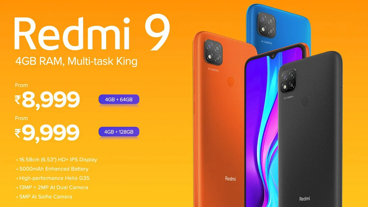 कंपनी ने बताया कि रेडमी 9 का 4जीबी रैम व 64जीबी मेमोरी वेरिएंट 8,999 रुपए और 4जीबी रैम व 128जीबी स्टोरेज वेरिएंट 9,999 रुपए में आएगा। दोनों ही फोन के स्टोरेज को माइक्रोएसडी कार्ड की मदद से 512जीबी तक बढ़ाया जा सकेगा।