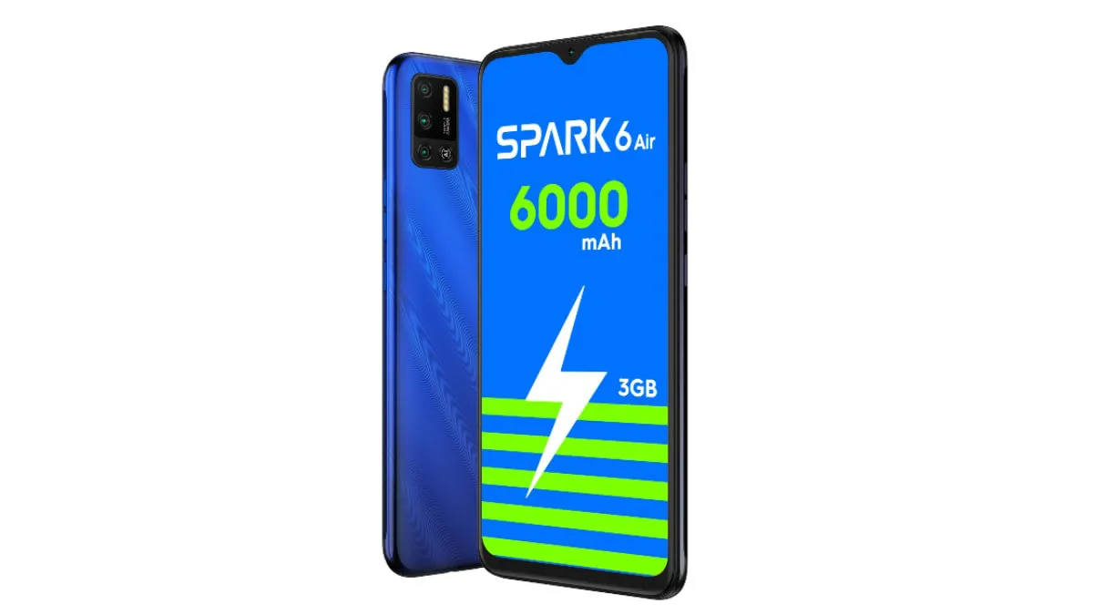 फोन की इंटरनल मेमोरी एक टीबी तक गैर-हाइब्रिड ट्रिपल कार्ड स्लॉट के साथ बढ़ाई जा सकती है। कंपनी का कहना है कि स्मार्टफोन नए स्पार्क 6 एयर (तीन जीबी प्लस 64 जीबी) में 6000 एमएएच की दमदार बैटरी दी गई है, जिसमें 716 घंटे का स्टैंडबाय, 37 घंटे का कॉलिंग टाइम, 21 घंटे का इंटरनेट और वाई-फाई, 134 घंटे का म्यूजिक प्लेबैक, 19 घंटे का गेमिंग टाइम और 23 घंटे का वीडियो प्लेबैक मिलता है। टेक्नो ने दावा किया है कि इस बड़ी 6000 एमएएच बैटरी के साथ चार दिनों तक का बैटरी बैकअप मिल सकता है। नया स्पार्क 6 एयर वेरिएंट हेलियो ए25, ऑक्टा-कोर 1.8 गीगाहट्र्ज प्रोसेसर पर चलता है, जिससे वीडियो और फिल्म देखने और ऑडियो सुनने का बेहतरीन अनुभव मिलता है। स्पार्क 6 एयर सात इंच के डॉट नॉट एचडी प्लस डिस्प्ले, 20.5:9 आस्पेक्ट रेश्यो और 720 गुणा 1640 एचडी रिजॉल्यूशन के साथ बेहतरीन प्रदर्शन मिलता है।