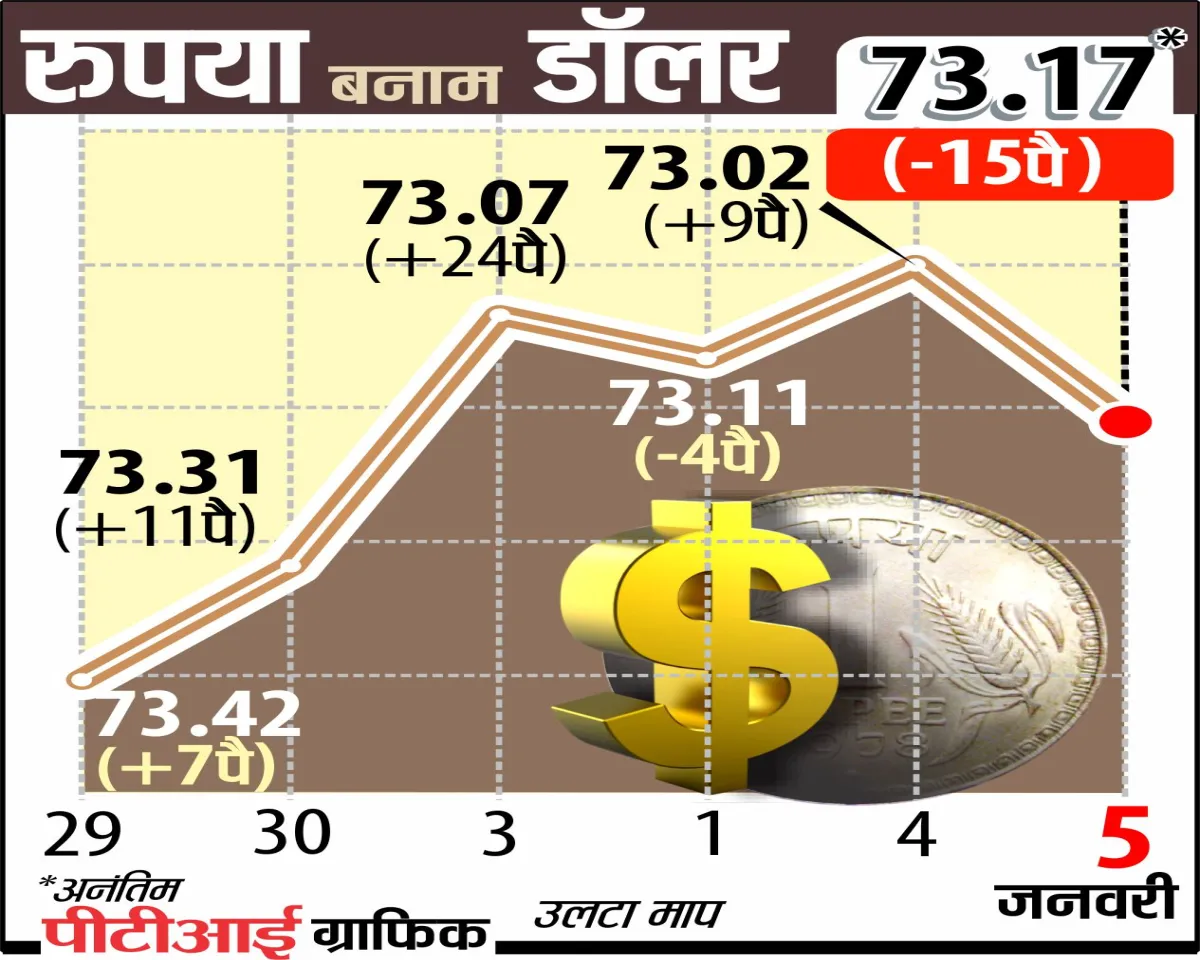 डॉलर के मुकाबले रुपये में मजबूती लगातार देखने को मिल रही है। 22 दिसंबर को रुपया 73.84 के स्तर पर बंद हुआ। जिसके बाद से 7 सत्र में डॉलर के मुकाबले रुपये में मजबूती रही। आज की गिरावट के बावजूद डॉलर के मुकाबले रुपय़ा 22 दिसंबर से करीब 1 फीसदी मजबूत बना हुआ है।