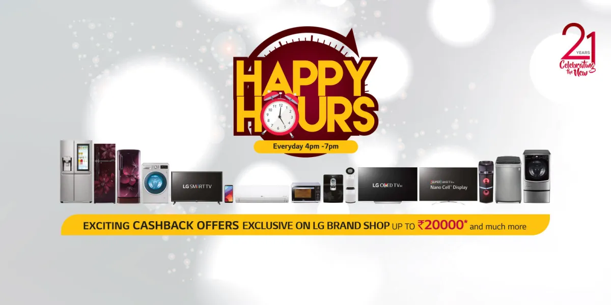 एलजी ने आज अखबारों में इससे संबंधित विज्ञापन प्रकाशित किया है। जिसमें पहली हैप्पी आवर फ्लैश सेल की जानकारी दी गई है। कंपनी यह सेल भारत में अपनी 21वीं सालगिरह के मौके पर आयोजित कर रही है। कंपनी के मुताबिक कंपनी के स्टोर्स पर यह फ्लैश सेल शाम 4 बजे से 7 बजे के बीच आयोजित होगी। इस सेल में ग्राहकों को 20000 रुपए तक के कैशबैक मिल रहे हैं। यह कैशबैक प्रोडक्ट की कीमत के अनुसार अलग अलग होंगे। इसके साथ ही एलजी अन्य ऑफर भी इस मौके पर खरीदारी करने वाले ग्राहकों को प्रदान कर रही है। कंपनी के मुताबिक यह ऑफर 31 मार्च तक ही सीमित है।