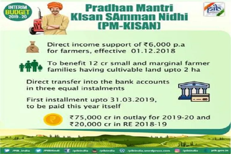 प्रधानमंत्री किसान सम्मान निधि योजना का ऐलान पीएम मोदी सरकार के अंतरिम बजट के दौरान किया गया था। प्रधानमंत्री किसान सम्मान निधि योजना के तहत देश के छोटे किसानों को सीधे उनके बैंक खाते में हर साल 6000 रुपए की सहायता राशि दी जाएगी। यह योजना 1 दिसंबर 2018 से पूरे देश में लागू हो चुकी है। प्रधानमंत्री किसान सम्मान निधि योजना के तहत पहले कमजोर किसान परिवार, जिनके पास 2 हेक्टेयर या उससे कम जमीन है तो उन्हें 6000 रुपए प्रति वर्ष दर से सहायता दिए जाने का फैसला लिया था लेकिन अब इसमें सभी किसानों को इस योजना का लाभ मिलेगा। सरकार सीधे किसनों के बैंक खाते में पैसे डालेगी। इस योजना की पहली किस्त 2.25 करोड़ किसानों को मिल भी चुकी है। तीन किस्तों में किसानों को हर साल 6000 रुपए दिए जाएंगे। मोदी सरकार ने प्रधानमंत्री किसान सम्मान निधि योजना के लिए 75,000 करोड़ रुपए आवंटित किए थे।
