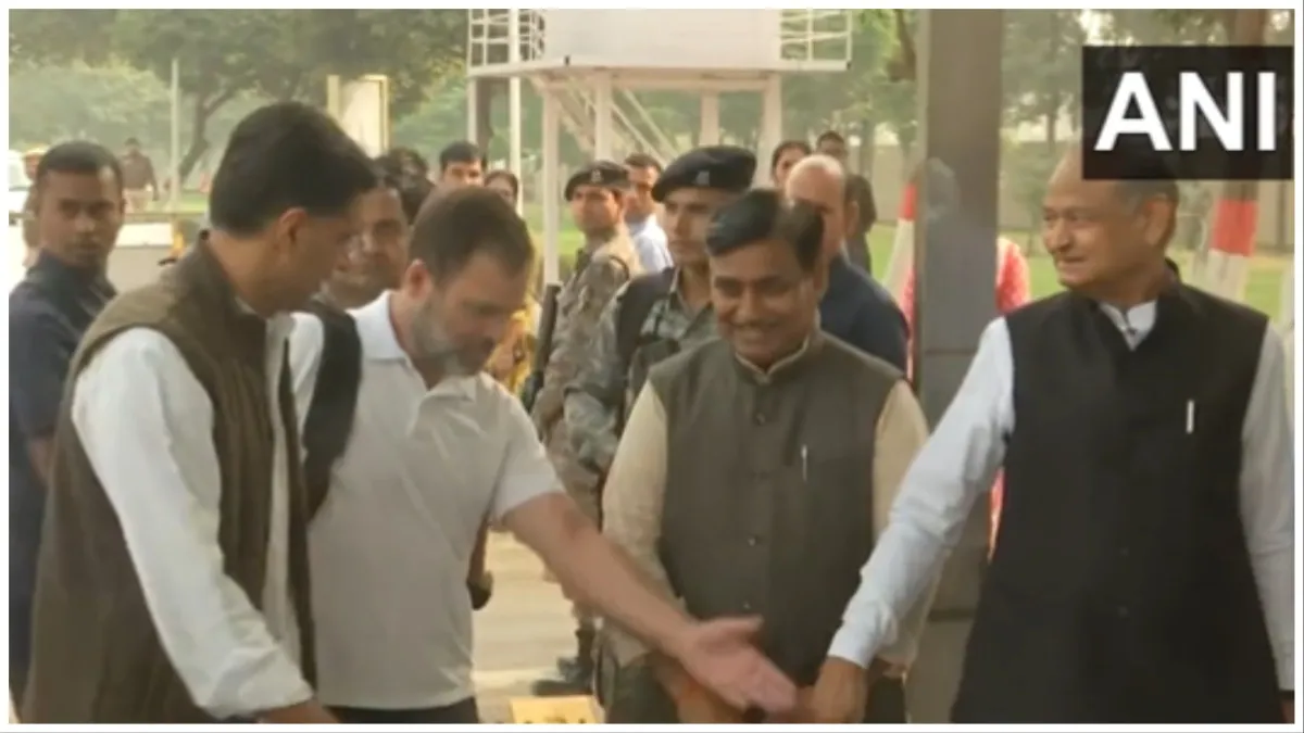 राजस्थान विधानसभा चुनाव के मद्देनजर राज्य में कांग्रेस की तैयारियां पूरी हो चुकी हैं। इस बीच राहुल गांधी आज जयपुर एयरपोर्ट पहुंचे। यहां राहुल गांधी के साथ सीएम अशोक गहलोत और सचिन पायलट भी दिखाई दिए। इस दौरान राहुल गांधी ने मीडिया से बात करते हुए कहा कि हम एक साथ हैं और एक साथ रहेंगे। हम मिलकर राजस्थान में सरकार बनाएंगे। यहां राहुल गांधी अपने पीठ पर एक काले रंग का बैग भी टांगे हुए दिखे। इस दौरान सीएम अशोक गहलोत ने न्यूज एजेंसी एएनआई से बात करते हुए कहा कि भाजपा के नेता आएंगे और गांधी परिवार पर झूठे आरोप लगाएंगे।