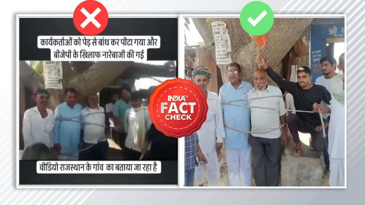 India TV Fact Check: राजस्थान की 200 विधानसभा सीटों पर 25 नवंबर को मतदान होना है, लेकिन उससे पहले चुनावी राज्य से जुड़ी कई सारी भ्रामक और फर्जी जानकारी सोशल मीडिया पर दुष्प्रचार की भावना से फैलाई जा रही है। इसी क्रम में हमारे सामने एक वीडियो आया जिसके साथ ये दावा किया जा रहा है कि राजस्थान के एक गांव में बीजेपी कार्यकर्ताओं को जनता ने पेड़ से बांधकर पीटा है और भाजपा के खिलाफ नारे लगाए। जब इंडिया टीवी ने इस वीडियो का फैक्ट चेक किया तो तीन साल पुराना निकला और हाल के विधानसभा चुनावों से इसका कोई संबंध नहीं है।