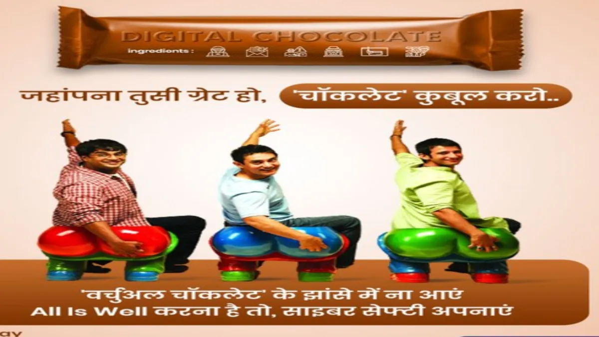 राजस्थान पुलिस के ट्वीट में ब्लॉकबस्टर फिल्म '3 इडियट्स' के संवाद का इस्तेमाल किया गया था। ट्वीट में फिल्म के एक पोस्टर के साथ लिखा था, "जहांपनाह तुस्सी ग्रेट हो, चॉकलेट कुबूल करो।" पोस्ट में नीचे लिखा था, "वर्चुअल चॉकलेट के झांसे में न आएं। ऑल इज वेल करना है तो साइबर सेफ्टी अपनाएं।" इसके जरिये लोगों को "डिजिटल चॉकलेट" यानी ऑनलाइन धोखाधड़ी से बचने और "ऑल इज वेल" यानी सबकुछ दुरुस्त रखने के लिए साइबर सुरक्षा अपनाने का संदेश दिया गया है।