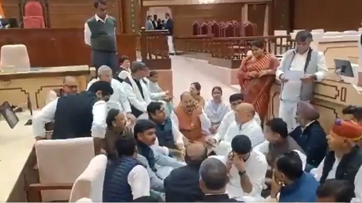 नेता प्रतिपक्ष टीकाराम जूली ने इस पर आपत्ति जताई और मंत्री से माफी मांगने एवं शब्द को कार्यवाही से हटाए जाने की मांग की। इसके बाद कांग्रेस के विधायकों ने नारेबाजी शुरू कर दी और वे आसन के सामने आ गए। हंगामे के कारण सदन की कार्यवाही तीन बार स्थगित करनी पड़ी। चौथी बार शाम चार बजे जब सदन की बैठक हुई तो मुख्य सचेतक गर्ग ने विधायकों के निलंबन का प्रस्ताव रखा। (इनपुट- पीटीआई)