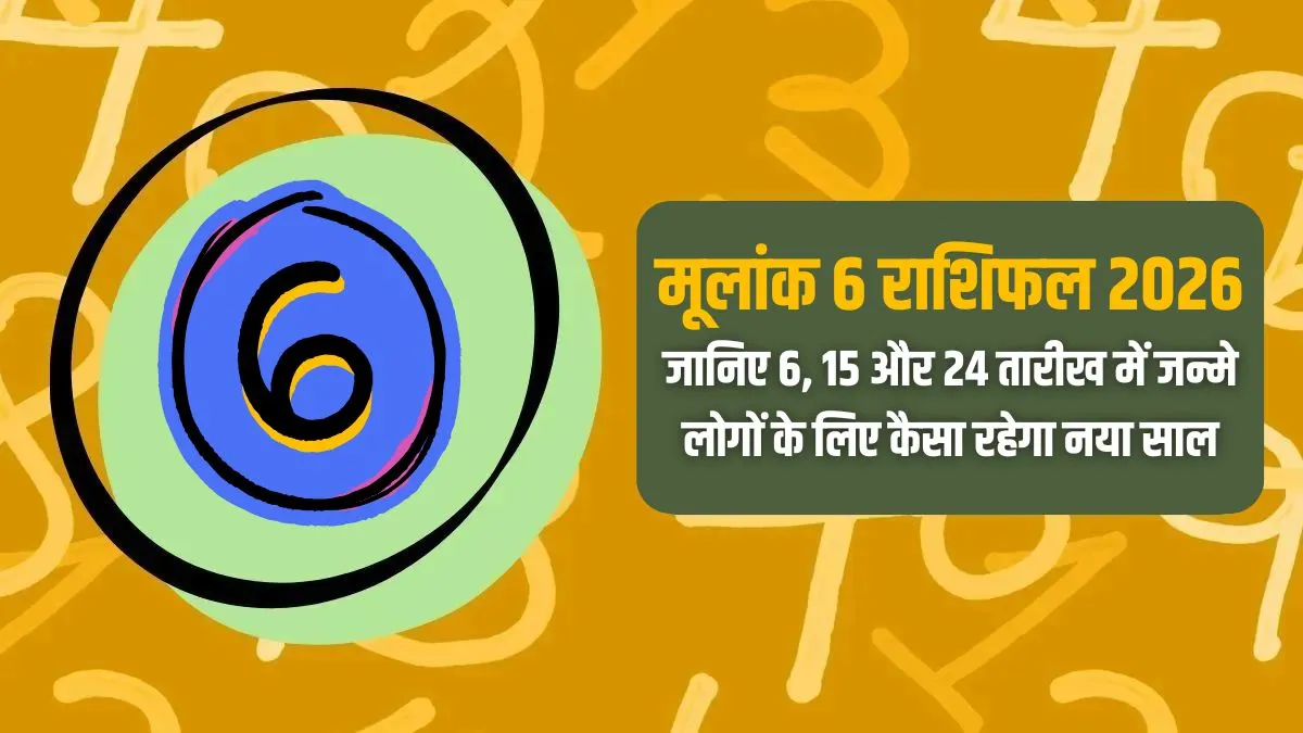 Mulank 6 Ank jyotish Rashifal 2026: जिन भी जातकों का जन्म किसी भी महीने की 6, 15 या फिर 24 तारीख को हुआ हो उन सभी का मूलांक 6 बनता है। अगर आपका मूलांक और भाग्यंक छह है तो यह साल आपके लिए मिला-जुला रहेगा। बता दें इस नंबर का संबंध शुक्र से है और शुक्र भोग विलासिता और लग्जरी का कारक है। इस साल आपको लोगों की ओवर हेल्प करने से बचना है। इस साल डिसिप्लिन आप जितना अपनाते हैं उतना आपके लिए अच्छा रहेगा। जल्दी उठिए। टाइम पर उठिए। इससे आपको लाभ मिलेगा।
