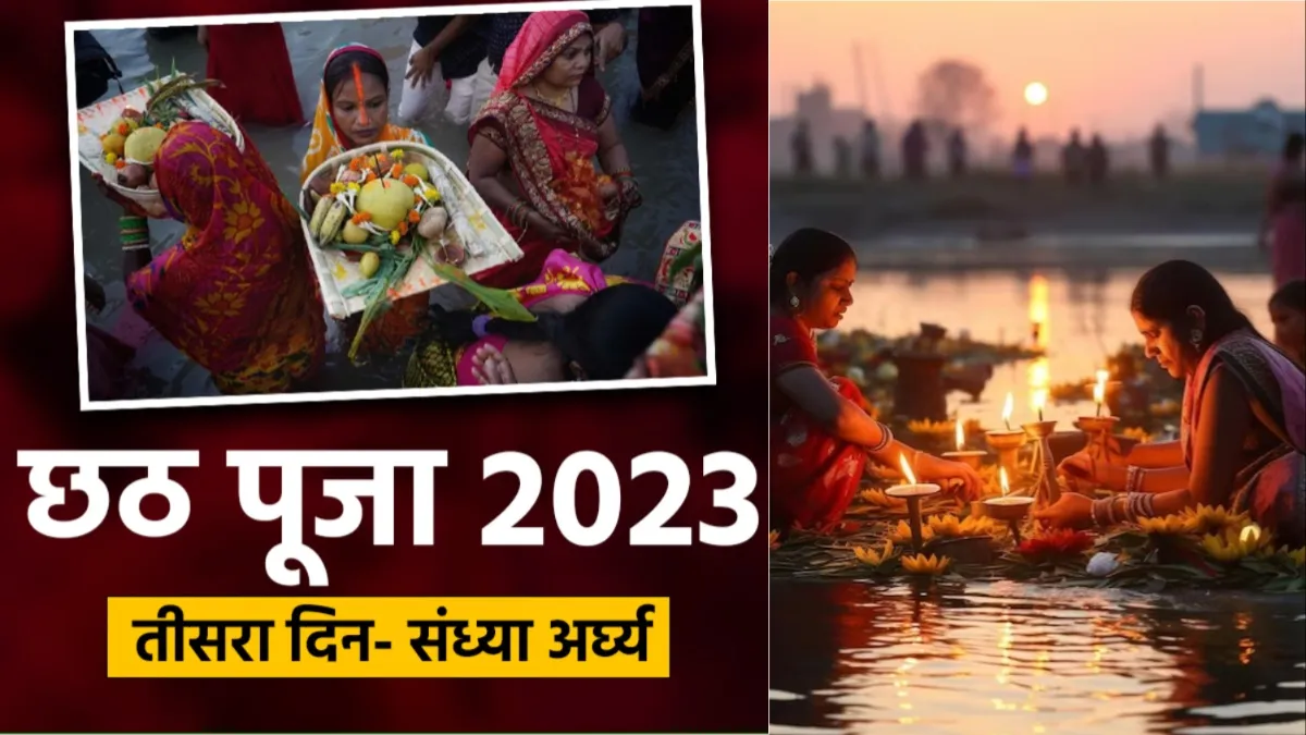 Chhath Puja 2023 Third Day: 'कांच ही बांस के बहंगिया, बहंगी लचकत जाय...' आज महापर्व छठ का तीसरा दिन है और हर घाट इसी तरह के भक्ति गीत से गूंजे उठेगा। आज भगवान सूर्य देव को पहला अर्घ्य दिया जाएगा। आज नदी, तालाब और झील इत्यादि किनारे बने घाट पर लोग छठ का डाला लेकर पहुंचेंगे, जहां व्रती महिलाएं सूर्यास्त के समय पूरे श्रद्धा भाव से भगवान भास्कर को पहला अर्घ्य देंगी। व्रती पानी में खड़े होकर ठेकुआ, गन्ना समेत अन्य प्रसाद सामग्री से सूर्यदेव को अर्घ्य देती हैं और अपने अपने संतान की लंबी आयु के साथ परिवार की सुख-समृद्धि की प्रार्थना करती हैं।