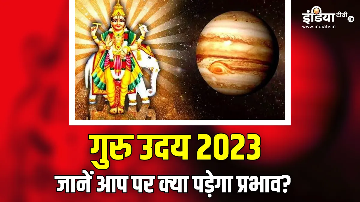 Guru Uday 2023: ज्योतिष शास्त्र के अनुसार जब भी गुरु बृहस्पति एक राशि से दूसरी राशि में प्रवेश करता है तो गुरु बृहस्पति के गोचर का प्रभाव ज्ञान, वृद्धि, शिक्षा, संतान, दान, पिता-पुत्र संबंध आदि पर पड़ता है। ज्योतिष शास्त्र के अनुसार बृहस्पति देव जब भी गोचर करते हैं तो इसके प्रभाव से सभी राशियों के जीवन में उथल-पुथल मच जाती है। वहीं देव गुरु बृहस्पति 27 अप्रैल 2023 को मेष राशि में उदय होने जा रहे हैं। इससे कई राशियों के जीवन में चमत्कारी परिवर्तन देखने को मिलेंगे। इन राशि के जातकों के धन में काफी वृद्धि होगी। आइए ज्योतिषी चिराग बेजान दारूवाला से जानते हैं कि मेष राशि में गुरु के उदय होने से अन्य राशियों पर क्या प्रभाव पड़ेगा?