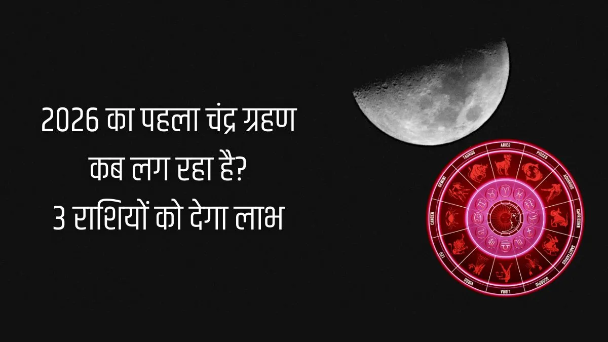 Chandra Grahan 2026: साल का पहला चंद्र ग्रहण 3 मार्च 2026 को होलिका दहन के दिन लगने जा रहा है। चंद्र ग्रहण की शुरुआत दोपहर 2 बजकर 16 मिनट पर होगी और इसका समापन शाम 7 बजकर 52 मिनट पर होगा। ये पूर्ण चंद्र ग्रहण होगा जो भारत, पूर्वी एशिया, दक्षिण-पूर्वी एशिया, ऑस्ट्रेलिया, प्रशान्त महासागर, उत्तर अमेरिका और दक्षिण अमेरिका के कुछ उत्तरी क्षेत्रों से भी दिखायी देगा। भारत के अधिकांश भागों में आंशिक चन्द्र ग्रहण दिखायी देगा, जबकि पश्चिमी भारत में प्रच्छाया चन्द्र ग्रहण दिखायी देगा। चलिए जानते हैं इस चंद्र ग्रहण का किन राशियों पर शुभ प्रभाव पड़ेगा।