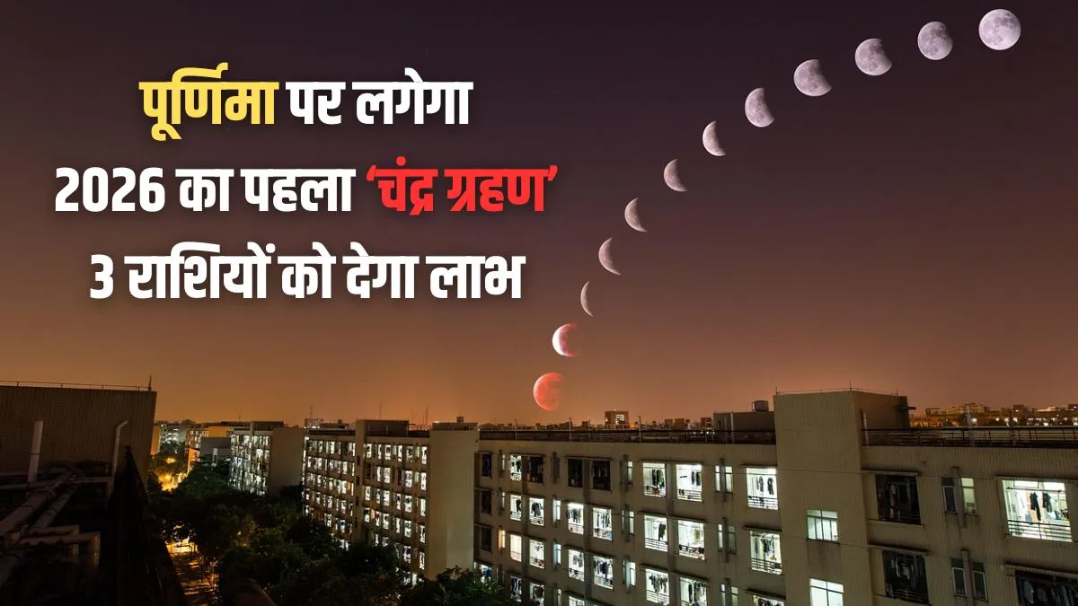 Chandra Grahan On Purnima 2026: साल का पहला चंद्र ग्रहण फाल्गुन पूर्णिमा यानी होलिका दहन के दिन लगेगा। ग्रहण की शुरुआत 3 मार्च 2026 को दोपहर 2 बजकर 16 मिनट पर होगी और इसका समापन शाम 7 बजकर 52 मिनट पर होगा। ये ग्रहण भारत में दिखाई देगा जिसकी वजह से इसका सूतक काल मान्य होगा। ग्रहण का सूतक काल 3 मार्च की सुबह 9 बजकर 39 मिनट से शाम 6 बजकर 46 मिनट तक रहेगा। चलिए आपको बताते हैं चंद्र ग्रहण किन तीन राशियों की किस्मत चमकाने जा रहा है।