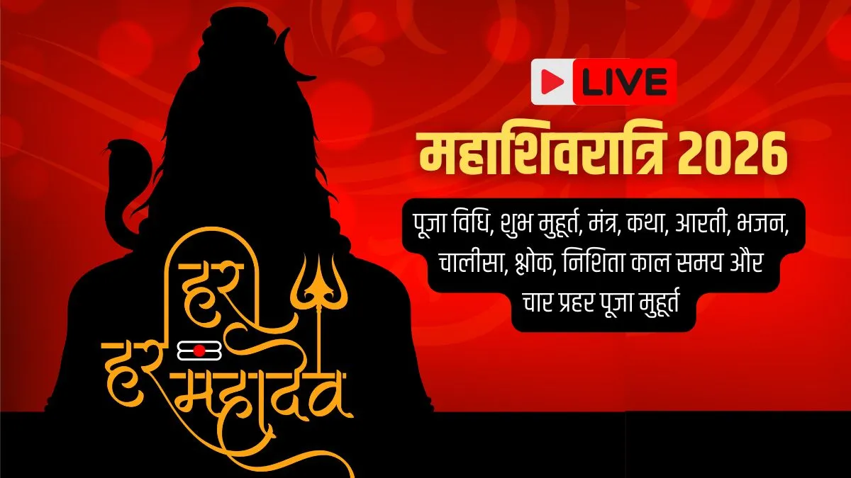 Maha Shivratri 2026 Vrat Vidhi, Muhurat Live Updates: महाशिवरात्रि यानी फाल्गुन मास की मासिक शिवरात्रि शिव भक्तों के लिए बेहद खास होती है। इस दिन श्रद्धालु व्रत रखते हैं, शिवलिंग का जलाभिषेक करते हैं और रात्रि जागरण करते हैं। कहते हैं जो कोई भक्त महाशिवरात्रि पर भगवान शिव की सच्चे मन से भक्ति करता है उसकी समस्त मनोकामनाएं पूर्ण हो जाती हैं। साल 2026 में महाशिवरात्रि 15 फरवरी, रविवार को मनाई जाएगी। इस दिन पूजा का सबसे शुभ मुहूर्त रात 12:09 से देर रात 01:01 बजे तक रहेगा। यहां आप जानेंगे महाशिवरात्रि 2026 से जुड़ी हर एक जानकारी- जैसे पूजा विधि, मुहूर्त, मंत्र, कथा, आरती, चालीसा, भजन इत्यादि।