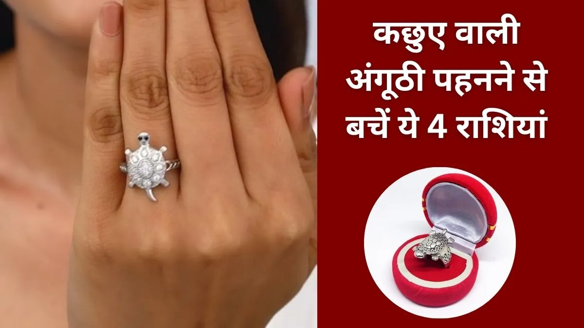 ज्योतिष शास्त्र के अनुसार मेष, वृश्चिक, मीन और कर्क राशि के जातकों को कछुए वाली अंगूठी पहनने से पहले विशेष सावधानी बरतनी चाहिए। इन राशियों के तत्वों के साथ कछुए का प्रभाव प्रतिकूल हो सकता है, इसलिए विशेषज्ञ की सलाह के बिना इसे धारण नहीं करना चाहिए।