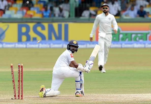 श्रीलंका ने दूसरे दिन का खेल खत्म होने तक दो विकेट पर 50 रन बनाए थे। कुशल मेंडिस 16 और दिनेश चांडीमल 8 रनों पर नाबाद लौटे थे। मेंडिस (24) को तीसरे दिन उमेश यादव ने चलता किया जबकि चांडीमल (10) को रवींद्र जडेजा ने पवेलियन की राह दिखाई।