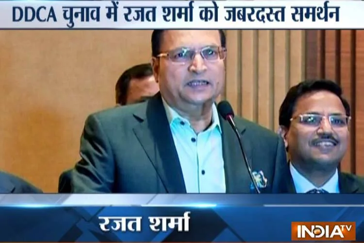 इस मौके पर रजत शर्मा ने कहा की उन्हें वित्त मंत्री अरूण जेटली ने भी चिट्ठी लिखकर इस चुनाव के लिए शुभकामानाएं दी हैं। चार्टर्ड अकाउंटर ग्रुप ही नहीं रजत शर्मा को इस चुनाव में क्रिकेटर वीरेन्द्र सहवाग, गौतम गंभीर, हरभजन सिंह, आकाश चोपड़ा, चेतन शर्मा, यशपाल शर्मा जैसे दिग्गज खिलाड़ियों ने भी सपोर्ट किया है। डीडीसीए का चुनाव 30 जून को खत्म होगा।