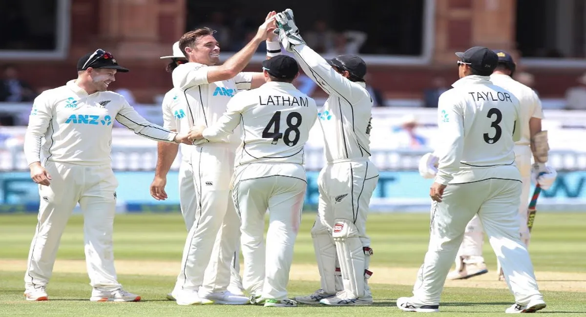 टिम साउदी और काइल जेमिसन की घातक गेंदबाजी के दम पर न्यूजीलैंड ने लॉर्डस मैदान पर खेले जा रहे पहले टेस्ट मैच के चौथे दिन लंच तक इंग्लैंड के उसकी पहली पारी में 164 रन पर छह विकेट आउट करके मेजबान टीम को संकट में डाल दिया है। इंग्लैंड अभी न्यूजीलैंड के स्कोर से 214 रन पीछे है जबकि उसके चार ही विकेट शेष हैं। न्यूजीलैंड ने अपनी पहली पारी में 378 रन का स्कोर बनाया था।