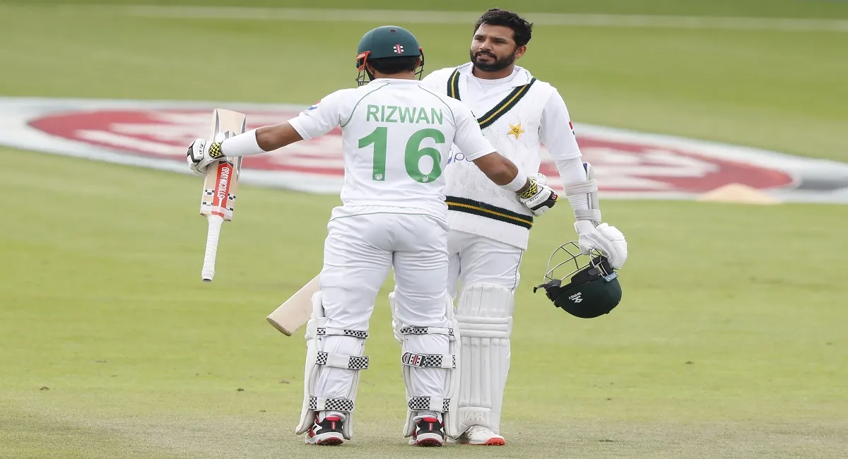 अजहर ने बेस की गेंद पर चौके के साथ 205 गेंद में 17वां टेस्ट शतक पूरा किया। इससे पहले रिजवान ने भी क्रिस वोक्स पर छक्के के साथ लगातार दूसरा अर्धशतक पूरा किया। रिजवान हालांकि इसके बाद अधिक देर नहीं टिक सके और वोक्स की ही लेग साइड से बाहर जाती गेंद को खेलने के प्रयास में विकेटकीपर बटलर को कैच दे बैठे। उन्होंने 113 गेंद की अपनी पारी में पांच चौके और एक छक्का मारा।