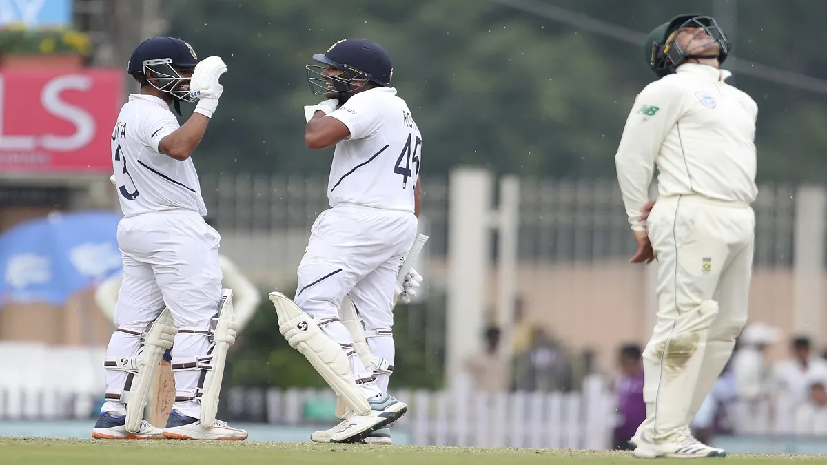 कोलकाता| रोहित शर्मा रांची में दक्षिण अफ्रीका के साथ खेले जा रहे तीसरे टेस्ट मैच के पहले दिन शनिवार को जब 95 रनों पर खेल रहे थे तब बादल छाए हुए थे और हल्की बारिश हो रही थी। रोहित ने तभी जोर से चिल्ला कर रहा था 'अभी नहीं'। रोहित का यह वीडियो सोशल मीडिया पर वायरल हो रहा है। रोहित ने इसके बाद छक्के के साथ अपना शतक पूरा किया।