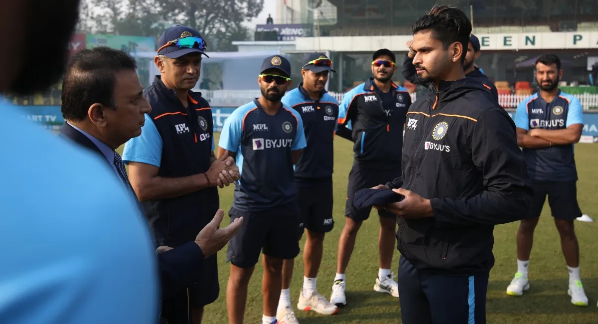 पूर्व कप्तान सुनील गावस्कर ने गुरुवार को श्रेयस अय्यर को भारत की ‘टेस्ट कैप’ प्रदान की। इस तरह से मुख्य कोच राहुल द्रविड़ ने भारतीय क्रिकेट के दिग्गजों से नये खिलाड़ियों को यह प्रतिष्ठित कैप (टोपी) दिलाने की पुरानी परंपरा फिर से जीवंत कर दी। अय्यर भारत की तरफ से टेस्ट क्रिकेट में डेब्यू करने वाले 303वें खिलाड़ी बने।