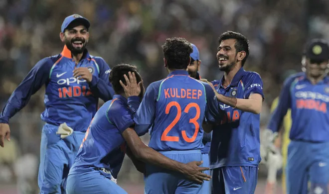 कोलकाता: कोलकाता के ईडन गार्डंस मैदान पर खेले गए भारत-ऑस्ट्रेलिया वनडे सीरीज के दूसरे मैच में भारतीय टीम ने कंगारुओं को 50 रन से हराकर ICC की वनडे रैंकिंग में पहला स्थान हासिल कर लिया। भारत ने ऑस्ट्रेलिया के सामने 253 रनों का लक्ष्य रखा था लेकिन भारतीय गेंदबाजों ने शानदार गेंदबाजी करते हुए कंगारुओं को 200 रन पर ऑल आउट कर दिया। यह मैच भारतीय लेग स्पिनर कुलदीप यादव के लिए भी यादगार रहा जिन्होंने लगातार 3 ऑस्ट्रेलियाई खिलाड़ियों को आउट करके हैट्र्रिक हासिल की। यह किसी भी भारतीय स्पिन गेंदबाज द्वारा वनडे मैचों में पहली हैट्रिक है।